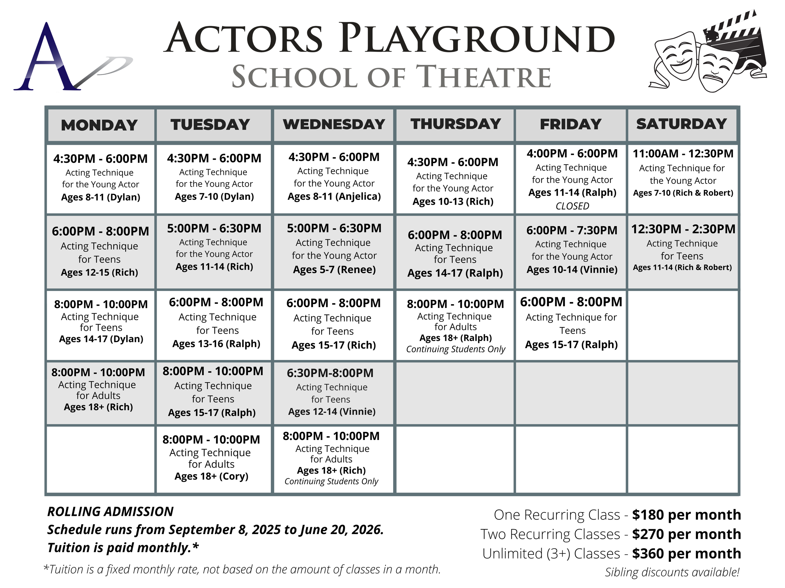 By completing the form, you are agreeing to be charged your first month’s tuition at sign up and continue to pay the monthly tuition on the 1st of every month. Tuition may be paused or cancelled upon request before the 1st of the month. (Schedule can also be viewed at bottom of this page).